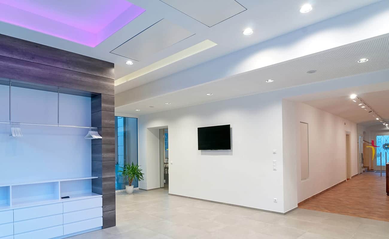 Zentraler Raum des Zubaus ist das Foyer mit großzügiger Raumhöhe. Mittels zweier Schiebetüren nach Norden und Osten, öffnet sich das Foyer großzügig vom Vorplatz hin. Bedingt durch das umlaufende Vordach gestaltet sich der Übergangsbereich zwischen Außen und innen fließend. Der gesamte Vorplatz im Westen und Norden wird auf das Niveau des Foyers abgegraben und schafft so einen zusätzlichen Freibereich für Veranstaltungen.