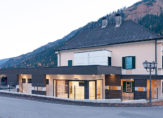 Als Gegenpol zum bestehenden, historisch wertvollen, Pfarrhof wurde ein schlichter eingeschossiger Kubus gewählt, der sich um den Bestand schmiegt, und andererseits auf jede architektonische „Verzierung“ bewusst verzichtet. Bauaufgabe war, die unterschiedlichen Bereiche (Foyer, Sanitärbereiche, Lagerräume, Carport) in einem einzelnen Baukörper unterzubringen. Mittels eines verglasten Zwischenstückes („Gelenk“) dockt sich der Kubus an den Bestand an.